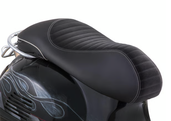 Köszönhetően eleme ergonomikus kialakítás ezt a sport-orientált ülés által termelt PIAGGIO, tökéletesen illeszkedik az általános megjelenését a Vespa GTS, ugyanakkor egy csipetnyi versenypálya hangulattal. Az ülések lovas érintkező felületét készül egy kereszt varrott és velúr hatású vinil anyagból, amely extra tapadást több visszajelzést és irányítást a robogók természetesen. Ez díszített fehér varrással és gyöngyfűzés hátul. Az ülés kissé nehezebb ülni, mint elődje, mint ez a verzió nem rendelkezik gél párna betéttel. A lovasok rész elvesztette 2cm, hogy bármilyen utas utas több helyiség és a kényelem. Ez az ülés kompatibilis az összes Vespa GTS modellek óta gyártott 2014-ben.