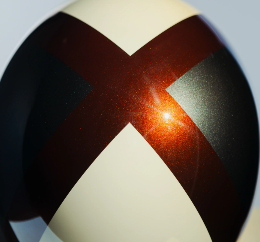 - Pepper white, metallic rust and stone automotive painted shell, gloss finish