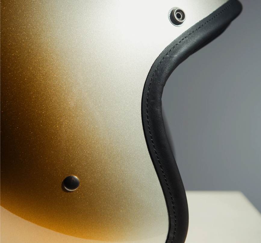 - Silver with Gold gradient painted shell, gloss finish